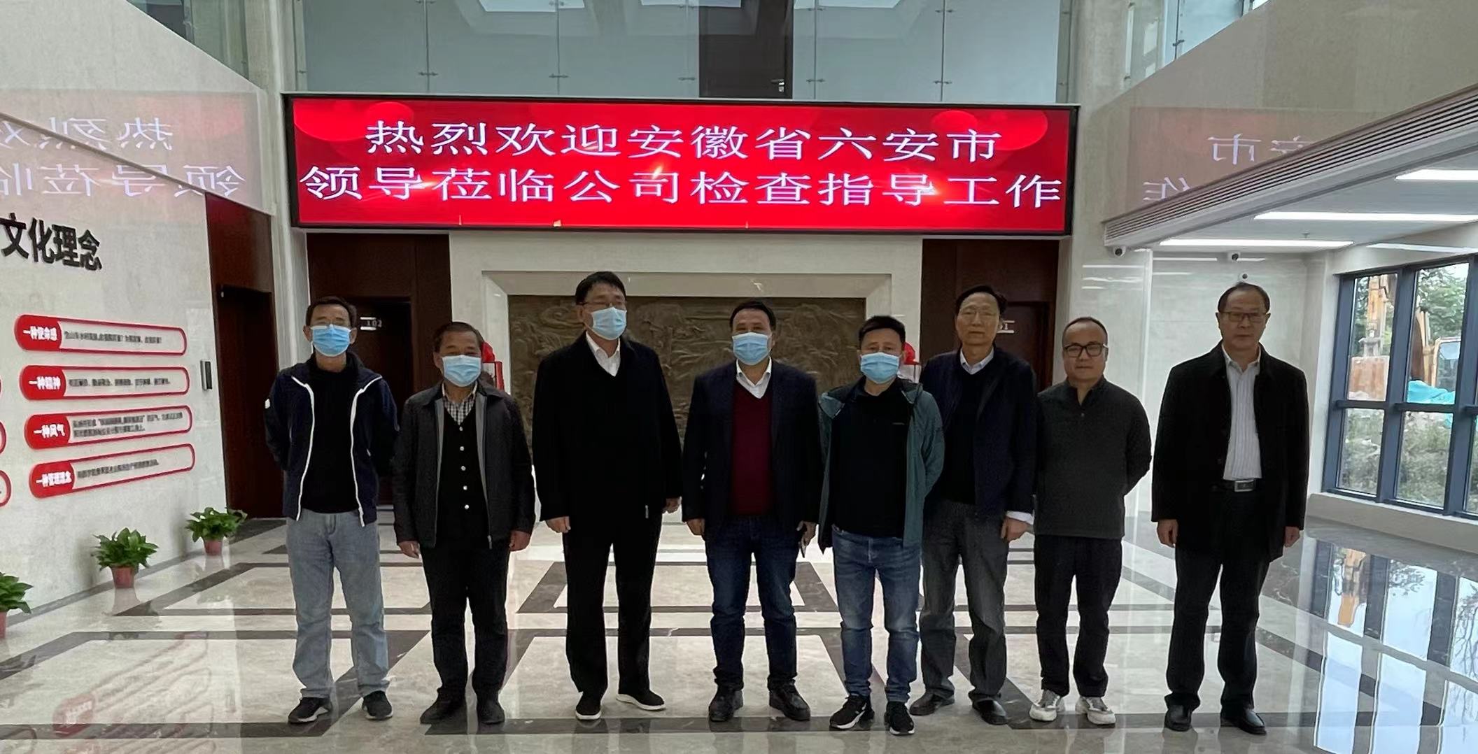 10月20日,六安市裕安區農業綜合開發處黨組成員、副局長胡家德,黨組成員、主任郝小山,六安市公共資源交易監督管理局主任宣興國一行七人蒞臨大禹集團檢查指導工作。集團副總經理陳鳳振、王鵬陪同考察,經營部相關同志參加。