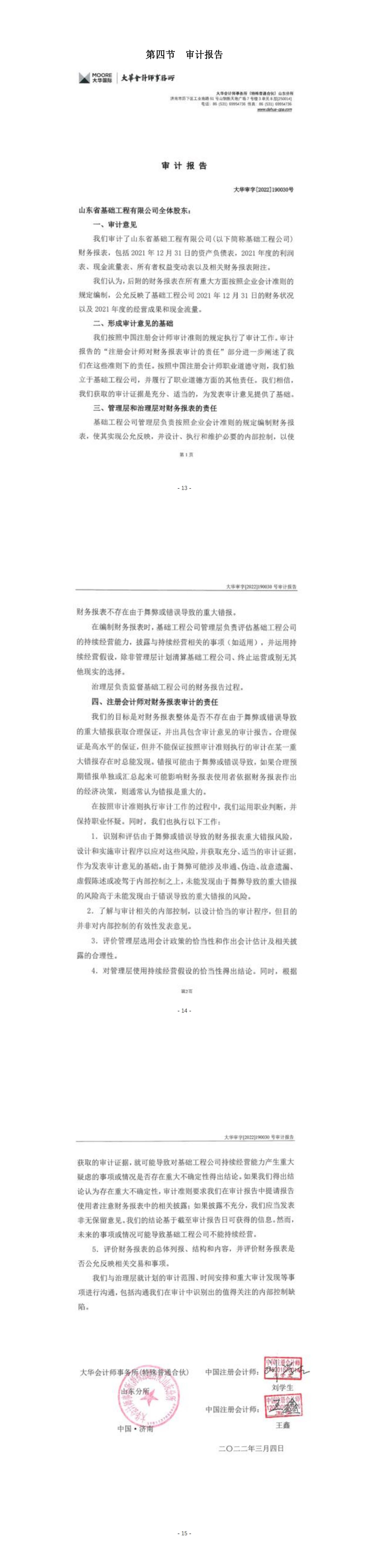 .山東省基礎(chǔ)工程有限公司2021年度財務(wù)重大信息公告