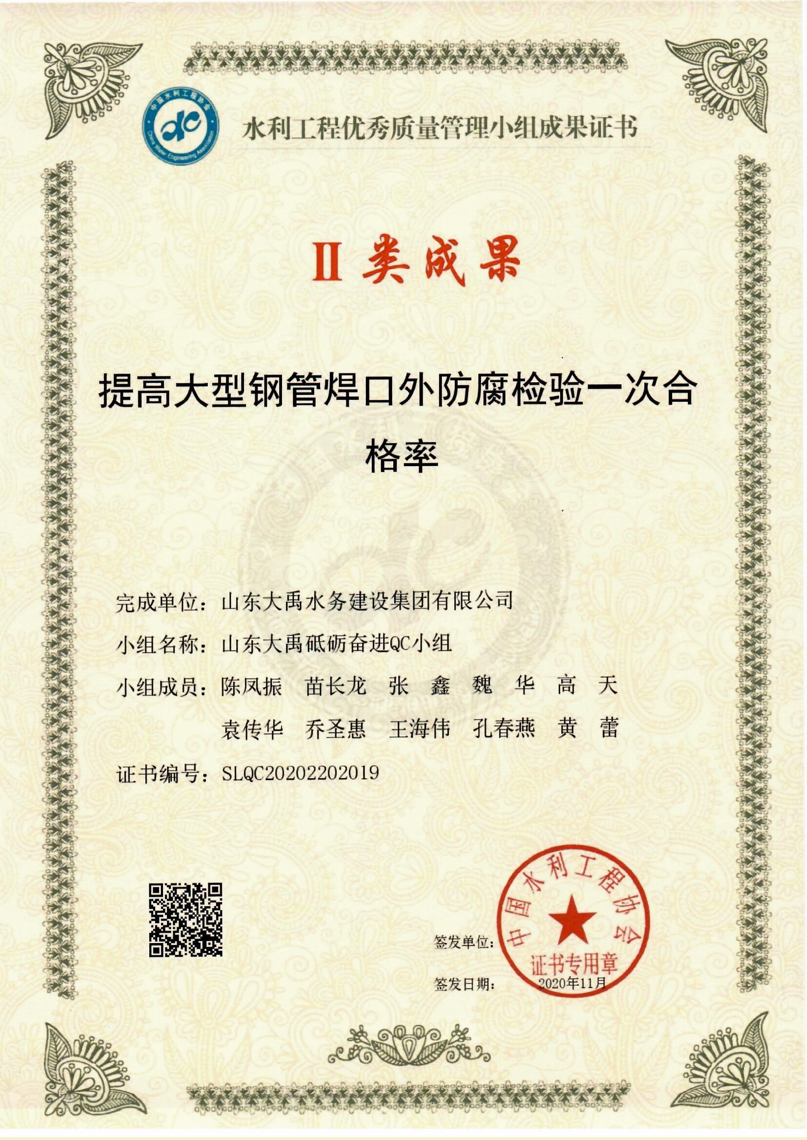 2020年QC小組II類成果證書